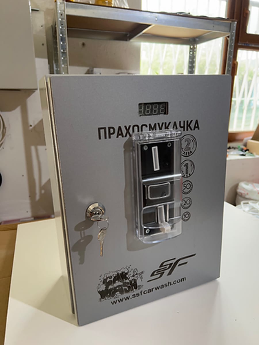 • Табло с включено управление за прахосмукачка на самообслужване.